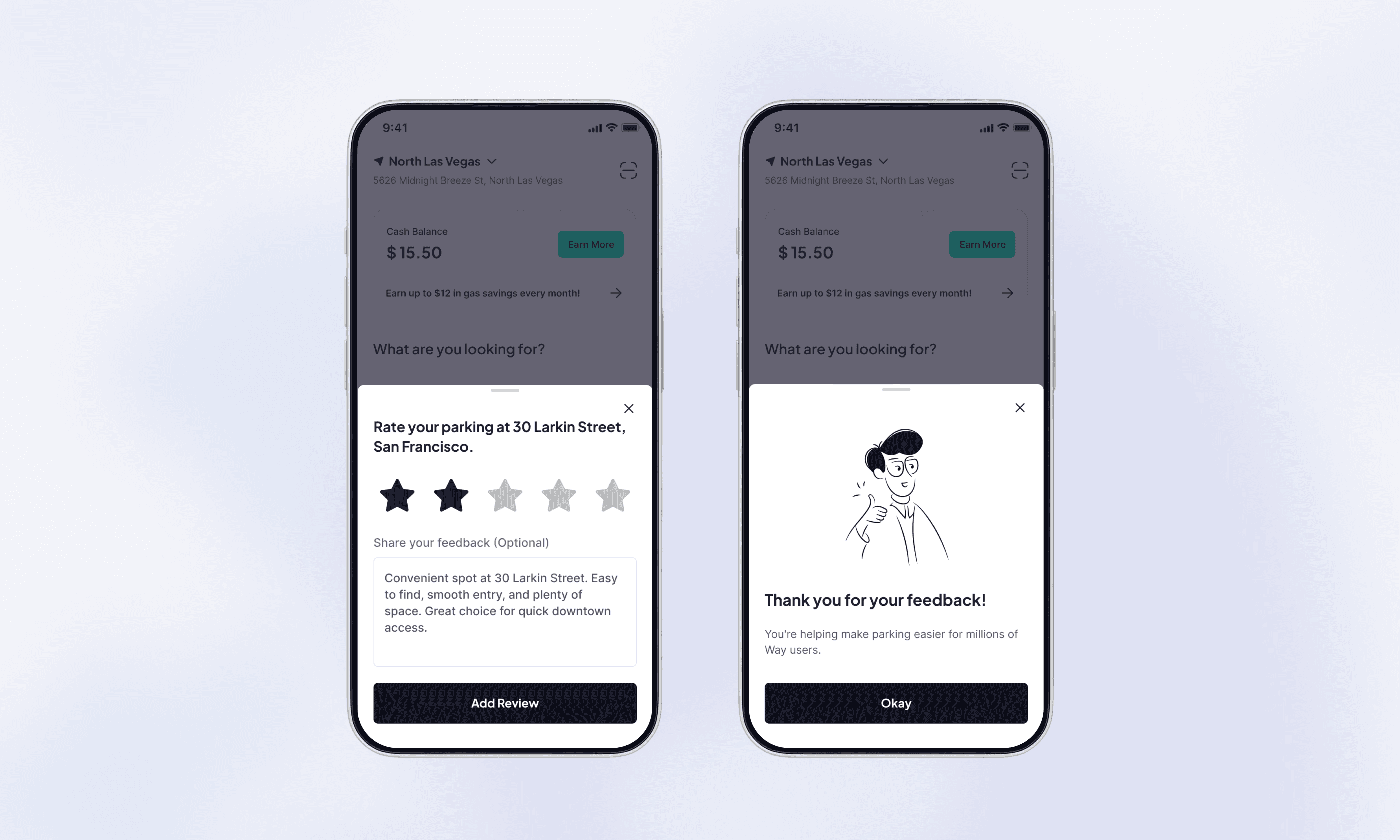 This project taught me how important it is to design for real-world complexity. Parking is messy and highly local, but users still expect a simple and reliable experience. Working across UX, GIS data, automotive partners, and city infrastructure helped me understand how digital products can bridge the physical world. I learned how to design for real-time data, make map interactions intuitive, simplify complicated parking rules, and build systems that scale beyond a single screen. Overall, this work helped move Way.com closer to becoming a complete, end-to-end parking solution.